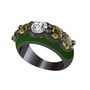 Beyaz zirkon ve peridot 925 ayar siyah rodyum kaplama gümüş yüzük (Yeşil mineli)