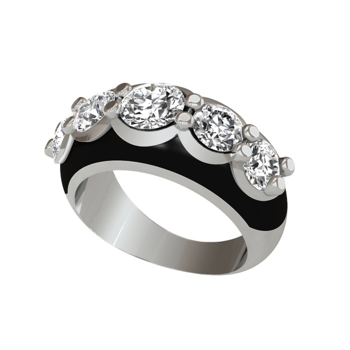 Beyaz zirkon ve pırlanta 18 ayar beyaz altın yüzük (2 karat, siyah mineli)
