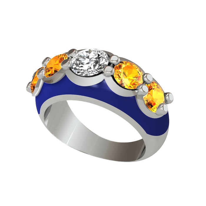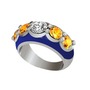 Beyaz zirkon ve sitrin 925 ayar gümüş yüzük (Lacivert mineli)