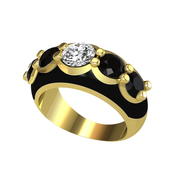 Beyaz zirkon ve siyah zirkon 18 ayar altın yüzük (Siyah mineli)