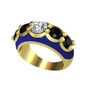 Beyaz zirkon ve siyah zirkon 925 ayar altın kaplama gümüş yüzük (Lacivert mineli)