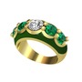 Beyaz zirkon ve yeşil kuvars 8 ayar altın yüzük (Yeşil mineli)
