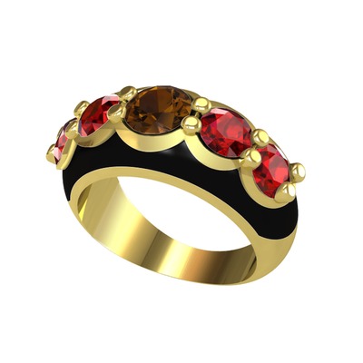 Dumanlı kuvars ve garnet 18 ayar altın yüzük (Siyah mineli)