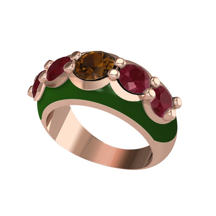 Dumanlı kuvars ve kök yakut 925 ayar rose altın kaplama gümüş yüzük (Yeşil mineli)