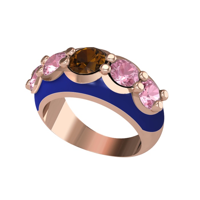 Dumanlı kuvars ve pembe kuvars 18 ayar rose altın yüzük (Lacivert mineli)
