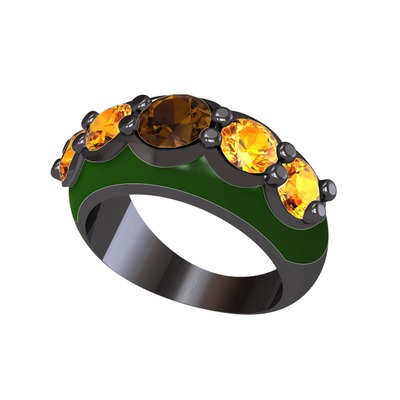 Dumanlı kuvars ve sitrin 925 ayar siyah rodyum kaplama gümüş yüzük (Yeşil mineli)