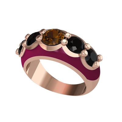 Dumanlı kuvars ve siyah zirkon 8 ayar rose altın yüzük (Bordo kırmızı mineli)