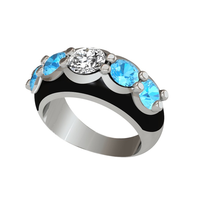 Elmas ve akuamarin 925 ayar gümüş yüzük (0.68 karat, siyah mineli)