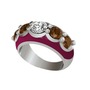 Elmas ve dumanlı kuvars 18 ayar beyaz altın yüzük (0.68 karat, bordo kırmızı mineli)