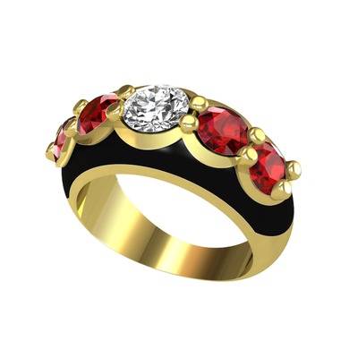 Elmas ve garnet 925 ayar altın kaplama gümüş yüzük (0.68 karat, siyah mineli)
