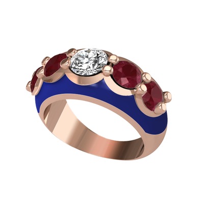 Elmas ve kök yakut 14 ayar rose altın yüzük (0.68 karat, lacivert mineli)