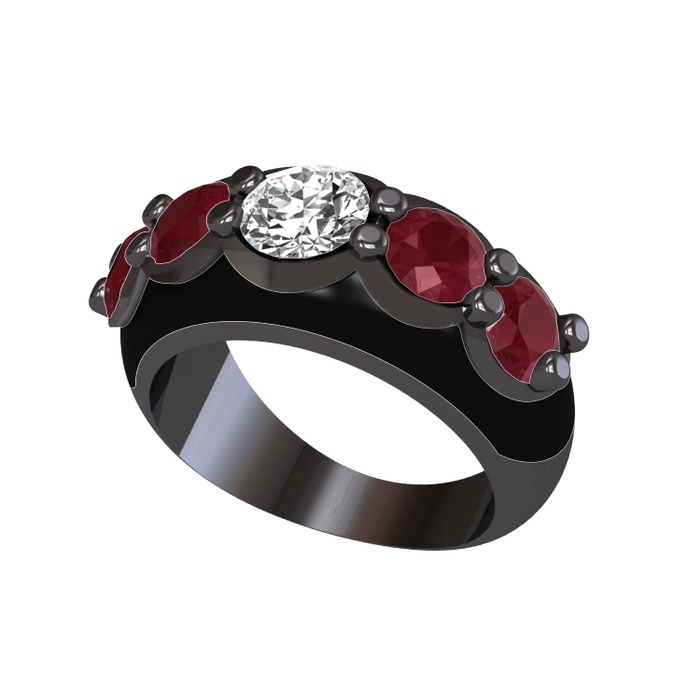 Elmas ve kök yakut 925 ayar siyah rodyum kaplama gümüş yüzük (0.68 karat, siyah mineli)