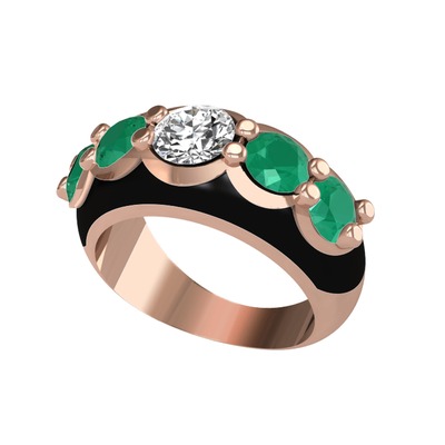 Elmas ve kök zümrüt 18 ayar rose altın yüzük (0.68 karat, siyah mineli)