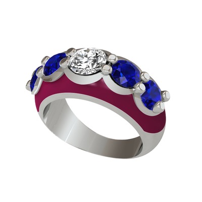 Elmas ve lab safir 18 ayar beyaz altın yüzük (0.68 karat, bordo kırmızı mineli)
