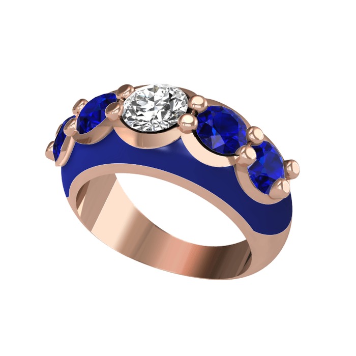 Elmas ve lab safir 18 ayar rose altın yüzük (0.68 karat, lacivert mineli)