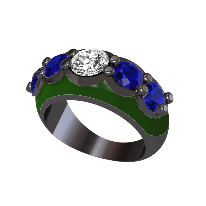 Elmas ve lab safir 925 ayar siyah rodyum kaplama gümüş yüzük (0.68 karat, yeşil mineli)