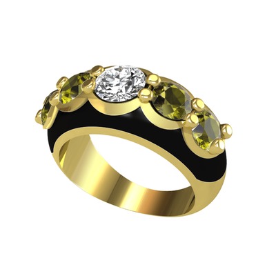 Elmas ve peridot 18 ayar altın yüzük (0.68 karat, siyah mineli)