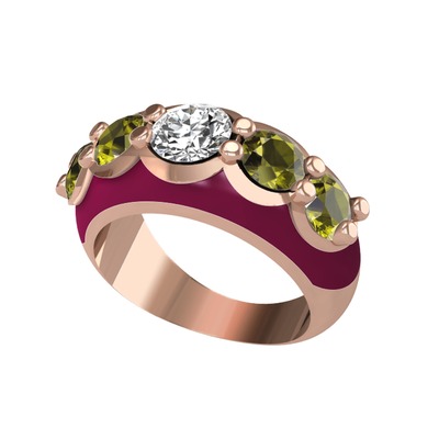 Elmas ve peridot 18 ayar rose altın yüzük (0.68 karat, bordo kırmızı mineli)