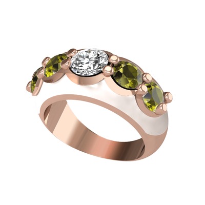 Elmas ve peridot 925 ayar rose altın kaplama gümüş yüzük (0.68 karat, beyaz mineli)