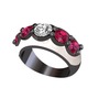 Elmas ve rodolit garnet 925 ayar siyah rodyum kaplama gümüş yüzük (0.68 karat, beyaz mineli)