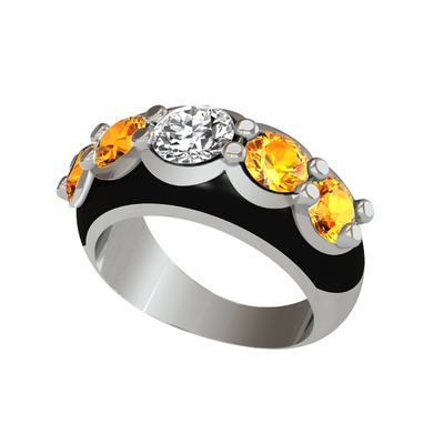 Elmas ve sitrin 14 ayar beyaz altın yüzük (0.68 karat, siyah mineli)