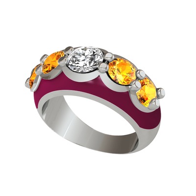 Elmas ve sitrin 18 ayar beyaz altın yüzük (0.68 karat, bordo kırmızı mineli)