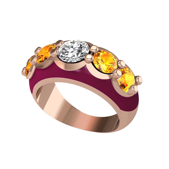 Elmas ve sitrin 925 ayar rose altın kaplama gümüş yüzük (0.68 karat, bordo kırmızı mineli)