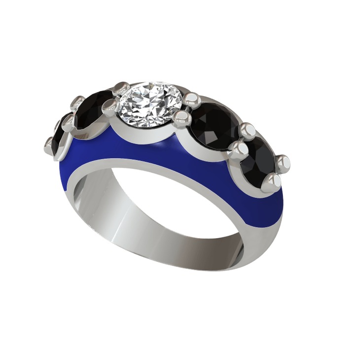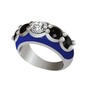 Elmas ve siyah zirkon 18 ayar beyaz altın yüzük (0.68 karat, lacivert mineli)