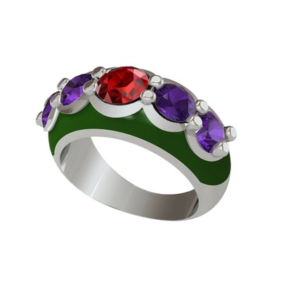 Garnet ve ametist 14 ayar beyaz altın yüzük (Yeşil mineli)
