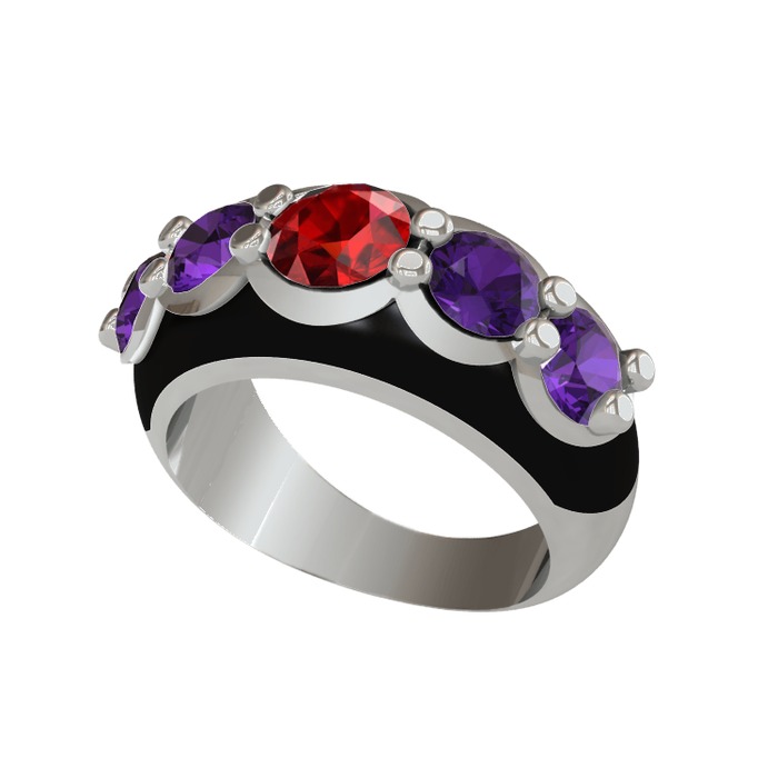 Garnet ve ametist 8 ayar beyaz altın yüzük (Siyah mineli)