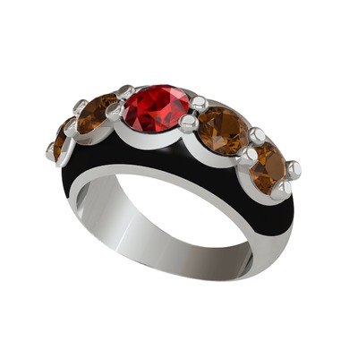 Garnet ve dumanlı kuvars 8 ayar beyaz altın yüzük (Siyah mineli)