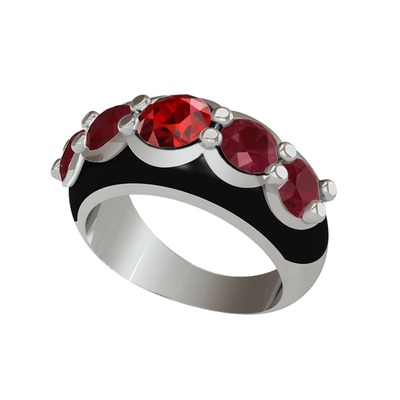 Garnet ve kök yakut 14 ayar beyaz altın yüzük (Siyah mineli)