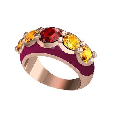 Garnet ve sitrin 14 ayar rose altın yüzük (Bordo kırmızı mineli)