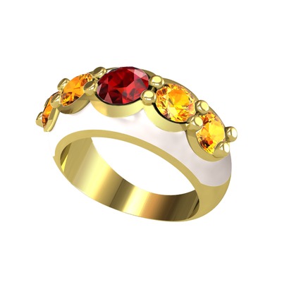 Garnet ve sitrin 18 ayar altın yüzük (Beyaz mineli)