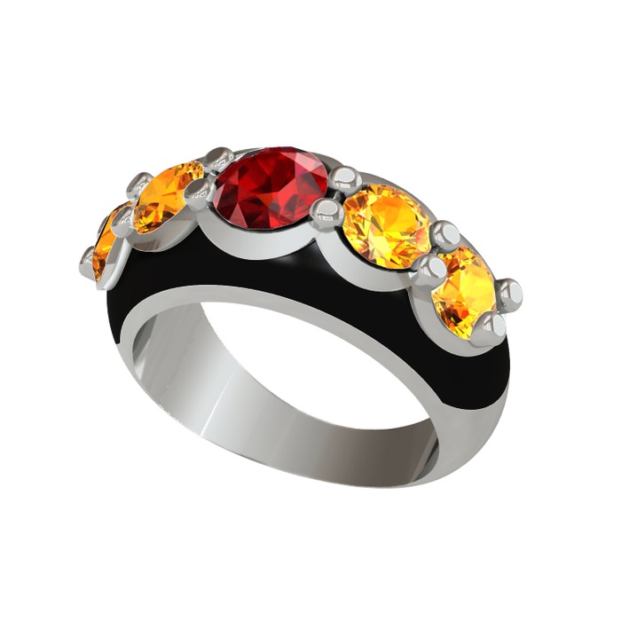 Garnet ve sitrin 18 ayar beyaz altın yüzük (Siyah mineli)
