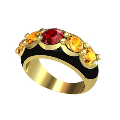 Garnet ve sitrin 925 ayar altın kaplama gümüş yüzük (Siyah mineli)