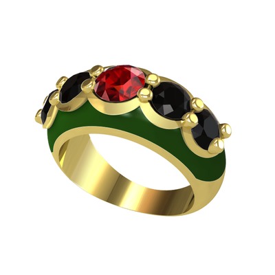 Garnet ve siyah zirkon 8 ayar altın yüzük (Yeşil mineli)