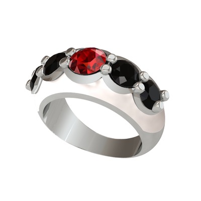 Garnet ve siyah zirkon 925 ayar gümüş yüzük (Beyaz mineli)