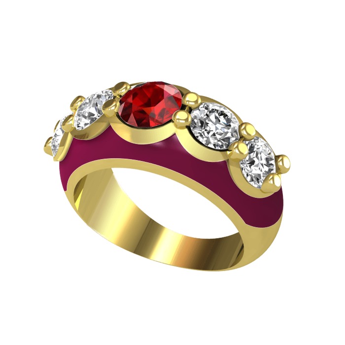 Garnet ve swarovski 8 ayar altın yüzük (Bordo kırmızı mineli)