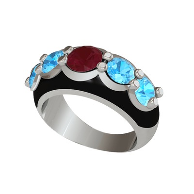 Kök yakut ve akuamarin 8 ayar beyaz altın yüzük (Siyah mineli)