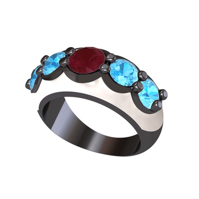 Kök yakut ve akuamarin 925 ayar siyah rodyum kaplama gümüş yüzük (Beyaz mineli)
