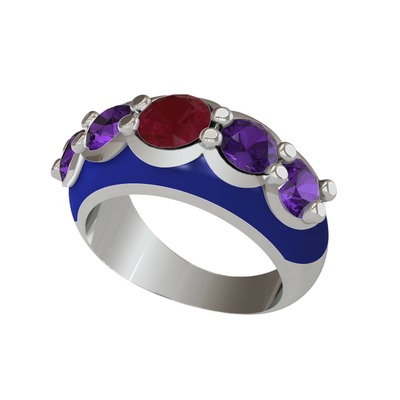 Kök yakut ve ametist 14 ayar beyaz altın yüzük (Lacivert mineli)