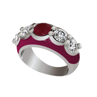 Kök yakut ve beyaz zirkon 18 ayar beyaz altın yüzük (Bordo kırmızı mineli)