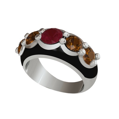 Kök yakut ve dumanlı kuvars 8 ayar beyaz altın yüzük (Siyah mineli)
