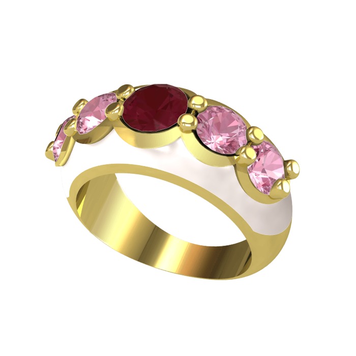 Kök yakut ve pembe kuvars 8 ayar altın yüzük (Beyaz mineli)
