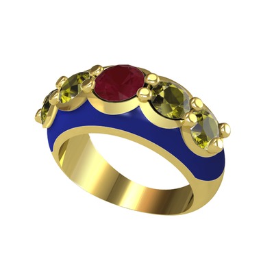 Kök yakut ve peridot 14 ayar altın yüzük (Lacivert mineli)