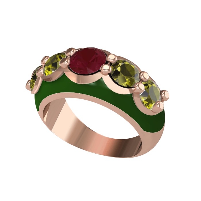 Kök yakut ve peridot 8 ayar rose altın yüzük (Yeşil mineli)