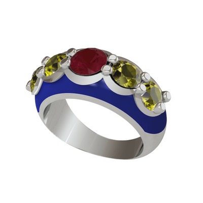 Kök yakut ve peridot 925 ayar gümüş yüzük (Lacivert mineli)