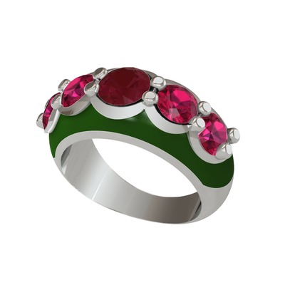 Kök yakut ve rodolit garnet 18 ayar beyaz altın yüzük (Yeşil mineli)