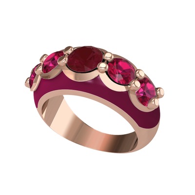 Kök yakut ve rodolit garnet 18 ayar rose altın yüzük (Bordo kırmızı mineli)